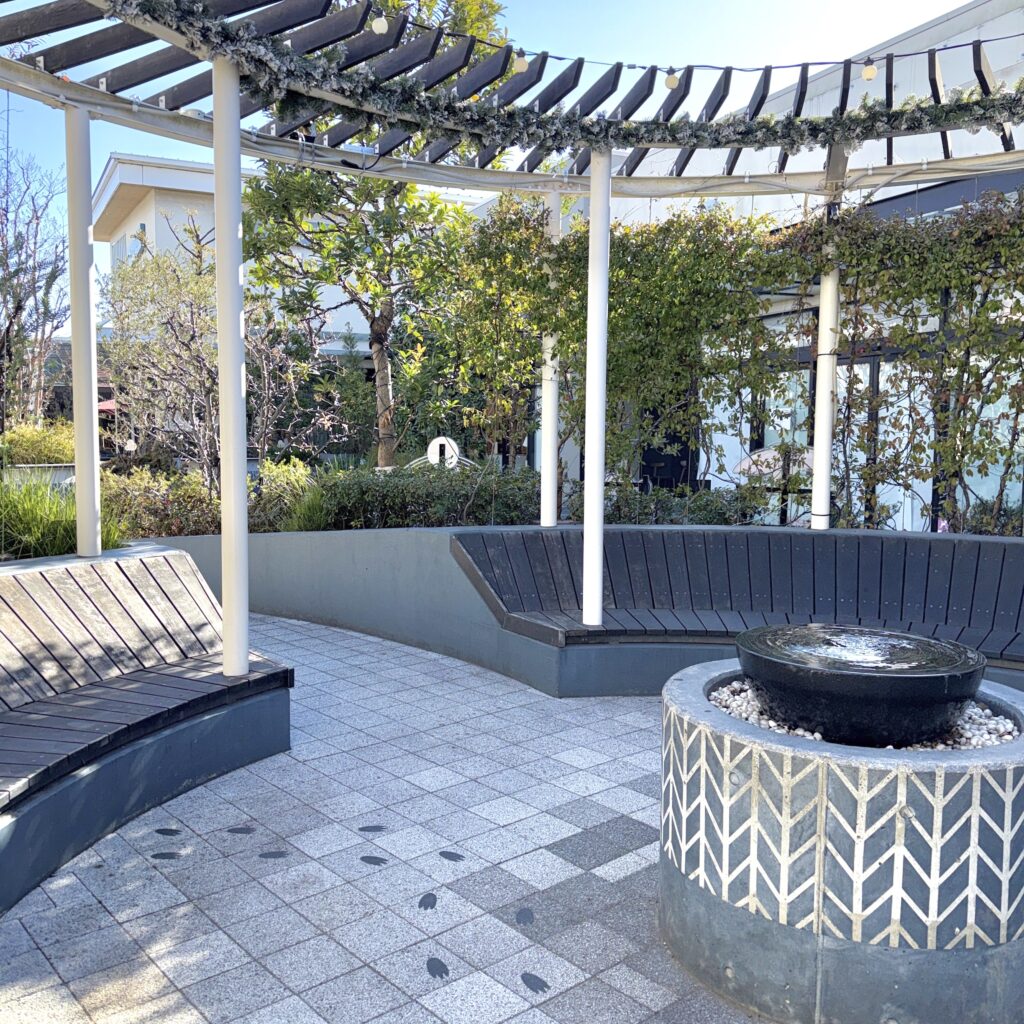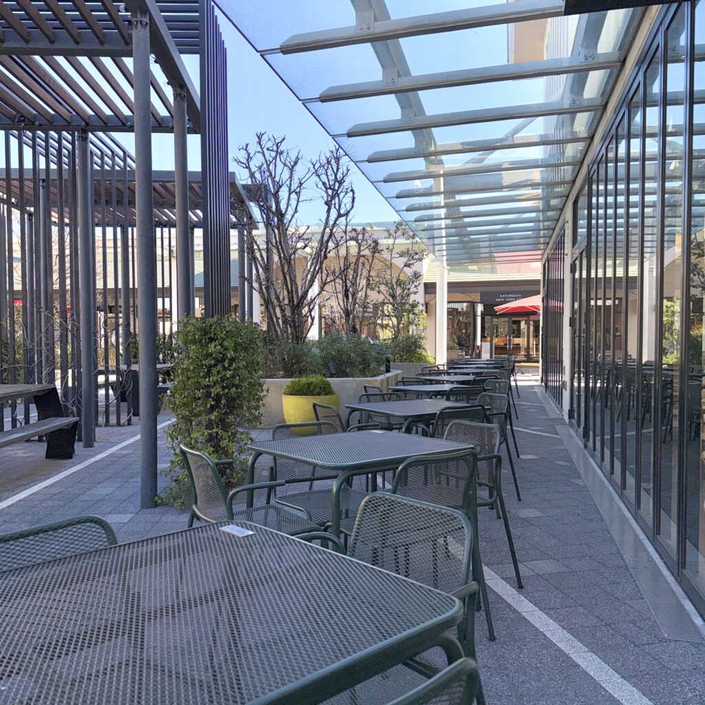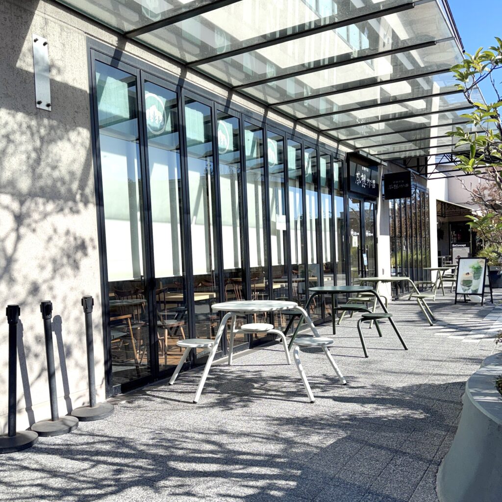 店舗専用テラス席はありませんが、店舗前に施設の椅子があります。