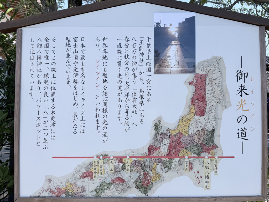 八剱神社は、出雲大社、富士山、寒川神社、玉前神社を一直線で結ぶレイライン上にあります。
